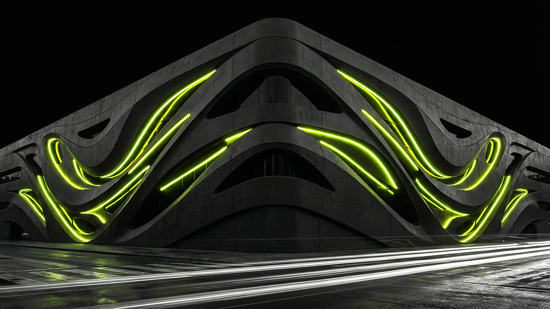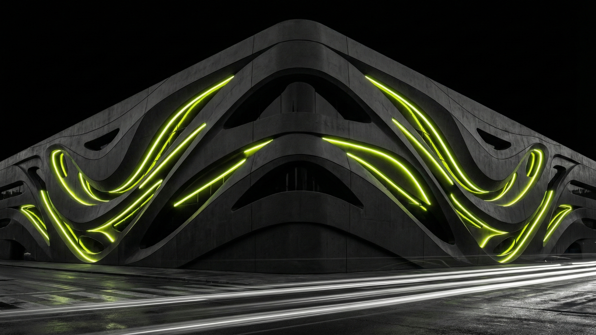 Oft liefern KI-Systeme bei architektonischen Anfragen entweder zu generische oder zu chaotische Ergebnisse. Das Ziel dieses Blueprints ist es, eine parametrische Ästhetik zu schaffen, die durch eine präzise definierte Akzentbeleuchtung in Cyber Lime (#CCFF00) Tiefe und Dynamik erhält.
