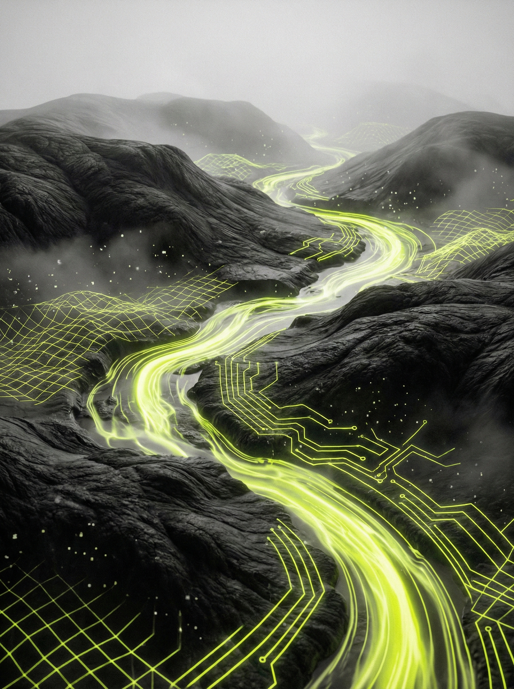 Wo Daten Form annehmen und Grenzen verschwimmen. Wir erschaffen neue visuelle Welten, die klassisches Design mit der grenzenlosen Rechenpower moderner Algorithmen vereinen.